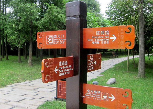 導(dǎo)視牌在不同的環(huán)境中體現(xiàn)的風(fēng)格和功能是有所不同的。如酒店賓館導(dǎo)視系統(tǒng)風(fēng)格各異,有歐式、日式等,主要體現(xiàn)樓層指示,樓層服務(wù)、酒店辦公區(qū),緊急出口等;旅游景區(qū)導(dǎo)視系統(tǒng)不僅起著公示、提示的作用,更加要強(qiáng)調(diào)它的溫馨與人性化;美食廣場(chǎng)主要展示不同地區(qū)的各式菜肴及當(dāng)日特價(jià)菜及飲食習(xí)慣等;另外還有娛樂休閑中心、樓盤小區(qū)、道路交通,辦公區(qū)域等導(dǎo)視(指示)牌,側(cè)重于起到傳遞信息,指示導(dǎo)視的作用。不論是用在哪里的導(dǎo)視牌,指示牌都在追求差異化,強(qiáng)調(diào)個(gè)性化,都有其文化體系,主題與文化是其最高境界,是靈魂所在。因此,導(dǎo)視牌的材質(zhì)、工藝、尺寸會(huì)直接影響到整體規(guī)劃的風(fēng)格、文化和品質(zhì)。